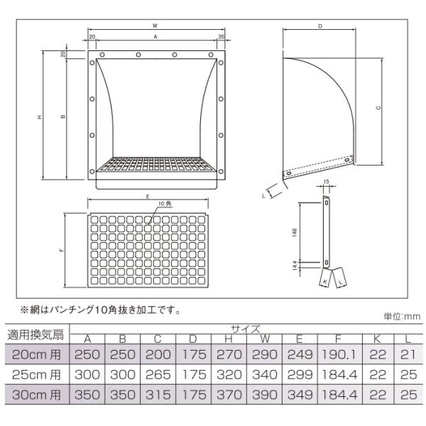 KGY 換気扇フード ステンレス製 屋外 換気扇フードカバー 防鳥網付 開口300mm 羽根径250mm 日本製 換気扇カバー ウェザーカバー 屋外フード