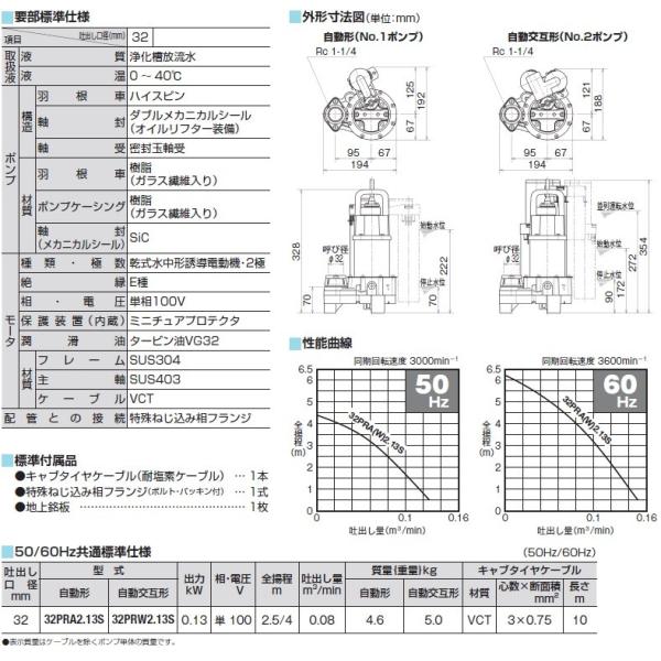 ツルミポンプ 浄化槽ポンプ 32PRA2.13S 32PRW2.13S 100V 2台セット 家庭用 水中ポンプ 汚水 排水ポンプ 放流ポンプ 浄化槽用