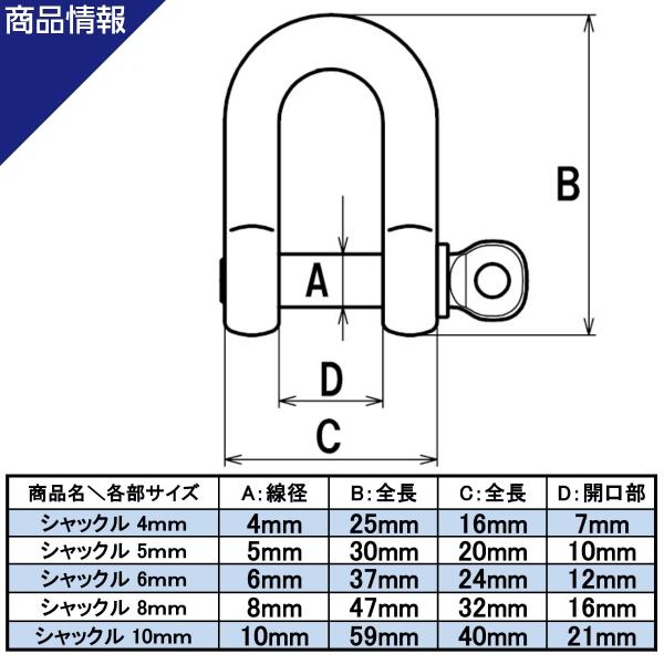 シャックル M5 線径 5mm ステンレス製 ねじ込み式 ネジシャックル 連結 接続 金具