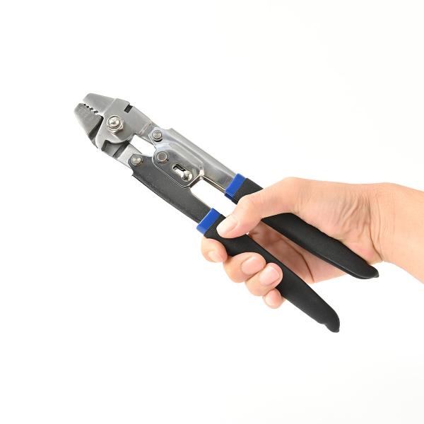 【在庫限り】 圧着ペンチ ブルー 圧着能力:線径 0.1~2.2mm ハンドプレッサー ワイヤークランプカッター ワイヤーロープ スリーブ かしめ 圧着工具 DIY