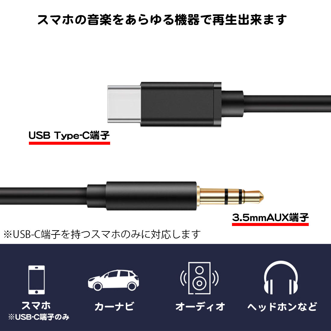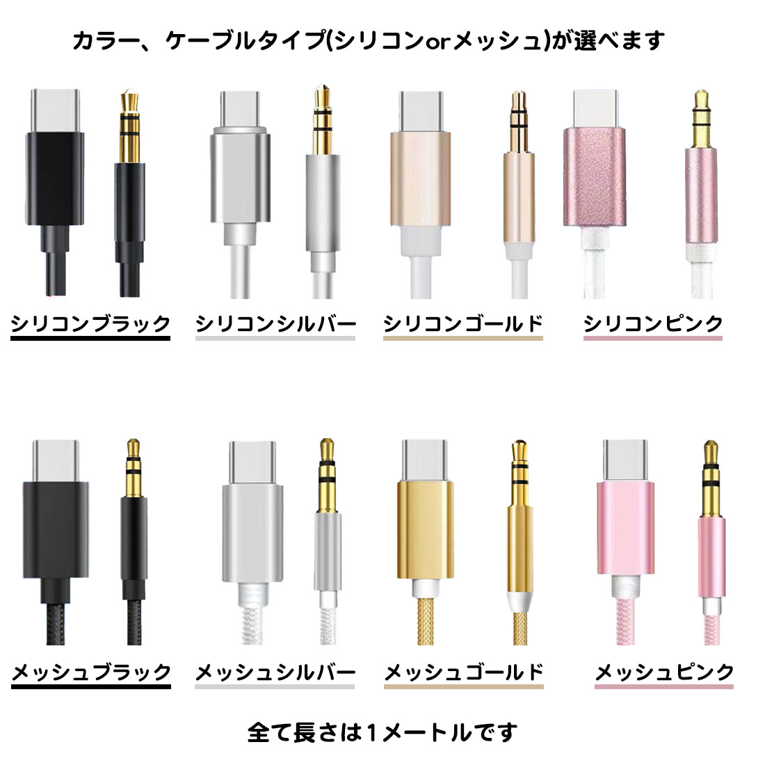 USB-C AUX 変換ケーブル 1m DAC内蔵 ステレオミニプラグ 3.5mm 3極 端子 オーディオジャック Type-c スマホ アンプ スピーカー カーナビ パソコン メッシュ