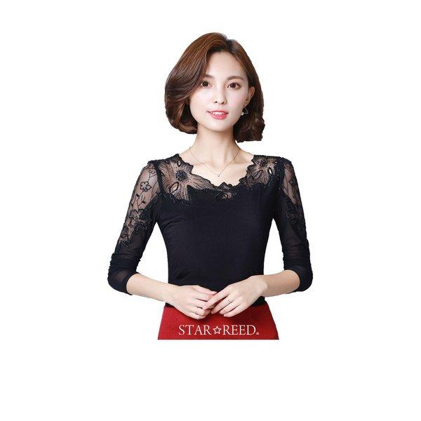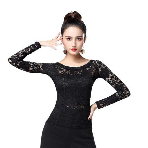 社交ダンス レディース ダンス用シャツ シンプル レース トップス 長袖ダンスTシャツ 何でも合う 着痩せ女性 ダンスウェア