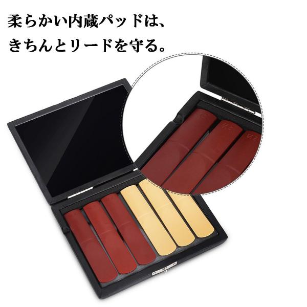 クラリネットリードケース サックスリードケース 6枚入 おしゃれ 丈夫 ブラック PUレザー 木製 持ち運び 便利