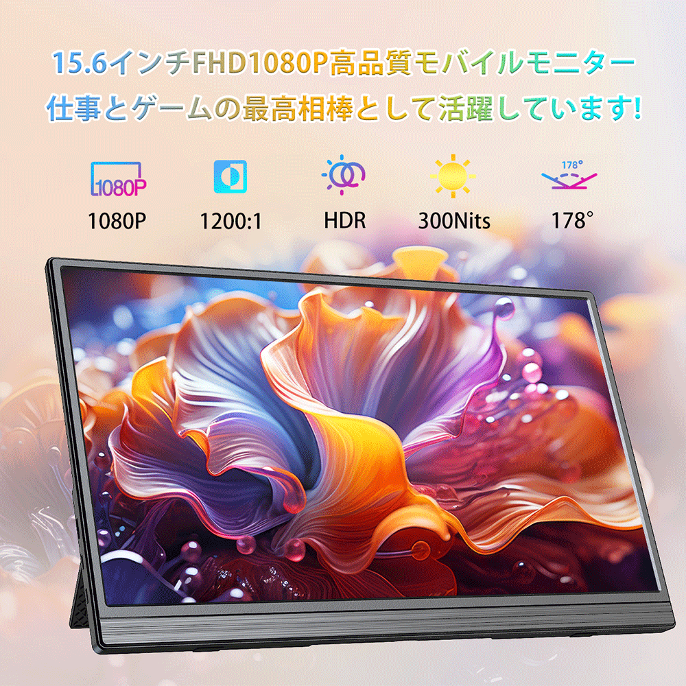 在庫処分 15.6インチ FHD フルHD モバイルモニター ゲーミングモニター モバイルディスプレイ PC液晶モニター 自立式スタンド搭載 HDMI、Type-C対応 30日保証
