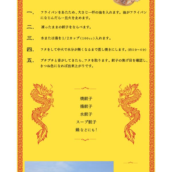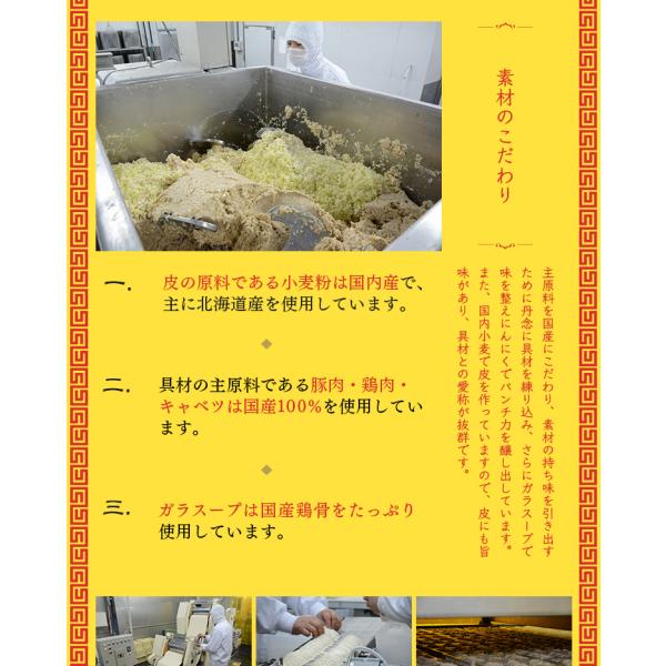 主原料の豚肉・鶏肉・キャベツを国産にこだわり、コクのある味に仕上げました。絶品の餃子をお楽しみください!