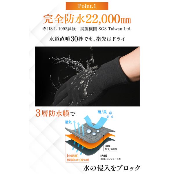 驚異の防水性能:22,000mm透湿性5100g/m2/24h JIS1092試験適合