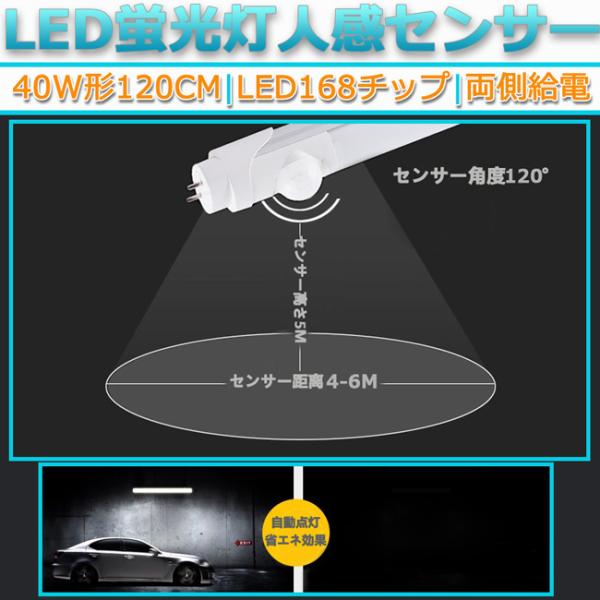 LED蛍光灯 40W形 120cm 昼白色5000K 人感センサー 両側給電 G13 高輝度168チップ 180°発光 3000lm グロー式 工事不要 省エネ 照明 即納 1本