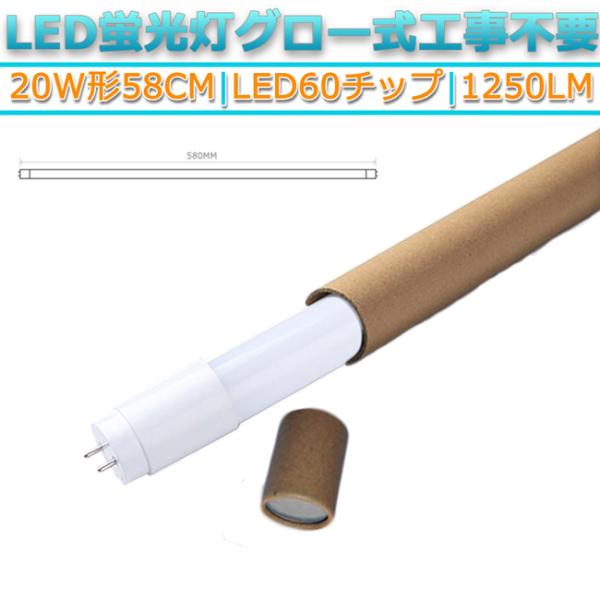 LED蛍光灯 20W形 58cm 昼光色6500K 割れにくい PC製 両側給電 直管型 G13 高輝度60チップ 320°発光 グロー工事不要 省エネ 照明 即納 10本セット