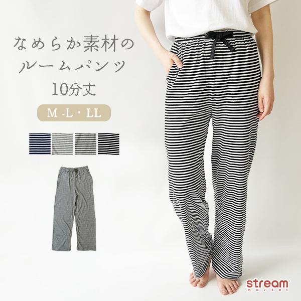 ルームウェア パンツ レディース 夏 春 パジャマ 部屋着 ルームパンツ 10分丈 ロング ボーダー 長ズボン ストレート M L LL ゆうパケット送料無料
