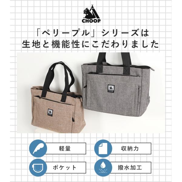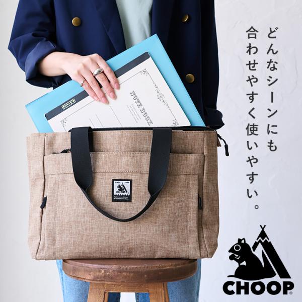 CHOOP シュープ トートバッグ レディース 仕切り 大きめ ファスナー付き A4 軽量 撥水 通勤 通学 肩掛け マグネット ポリキャンバス