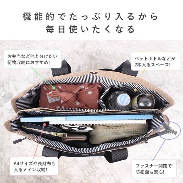 春 夏 秋 冬 おしゃれ かわいい お出かけ 買い物 カジュアル 機能的 便利 旅行 旅 国内旅行 海外旅行 トラベル ライブ フェス イベント 女の子 女性 男性 レディース メンズ 通勤 通学 仕事 出張 ビジネス 会社 オフィス プレゼント ギフト スタイルオンバッグ スタイルオンバック style on bag トートバッグ トート バッグ 肩掛け 肩がけ 手持ち 撥水 はっすい 撥水加工 はっ水加工 多機能 ポケット 内ポケット ファスナーポケット メッシュポケット 仕切り 仕切り付き A4 収納 ポリエステル 裏地 裏地あり 裏地付き ファスナー開閉 マグネットボタン