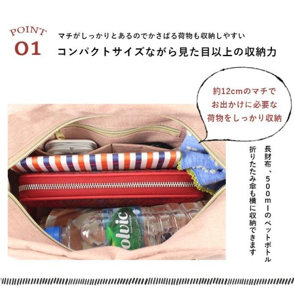コンパクトサイズながら約12cmのマチで見た目以上の収納力。