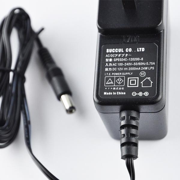 汎用スイッチング式ACアダプター 12V 2A 最大出力24W PSE取得品 出力プラグ外径5.5mm(内径2.1mm) 1年保証付 SUCCUL