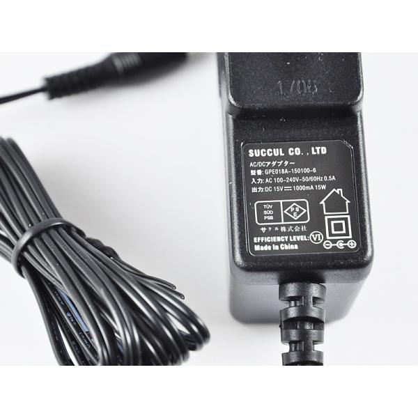 汎用スイッチング式ACアダプター 15V 1A 最大出力15W PSE取得品 出力プラグ外径5.5mm(内径2.1mm) 1年保証付 SUCCUL