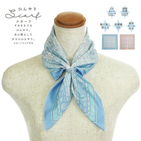 水で濡らして 接触冷感 スカーフ 夏用 サラサ柄 ひんやり 接触冷感 スカーフ UVカット 熱中症対策 首 冷やす 敬老の日 おしゃれ 雑貨 爆買