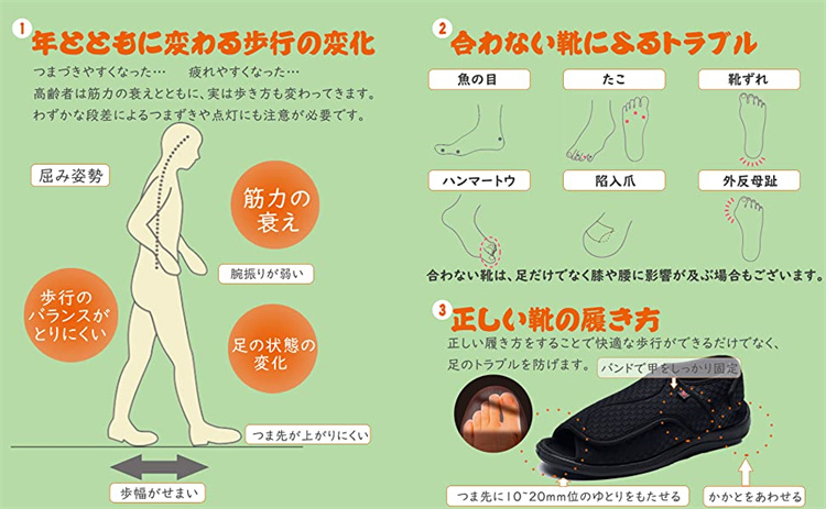 【かかとも調節可能】 靴底にフレックスラインを配置することでなめらかな屈曲を促進し、歩行しやすく疲れにくい設計、楽な歩行をサポート。脚がむくみがちの方も、この柔らかさを体験してください。柔らかさだけでなく、かかとはしかっり保持。