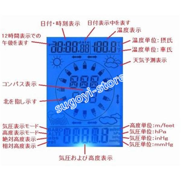 多機能 デジタル高度計 気圧計 温度計 コンパス 天気 日時 電池付き