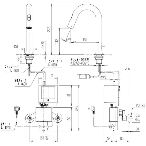 LIXIL・INAX 取替用自動水栓 AM-300CV1-AT リフレッシュオートマージュA 単水栓 100V 排水栓なし*