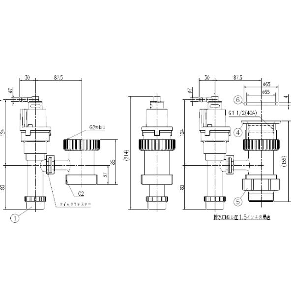 LIXIL・INAX(リクシル・イナックス) 電気温水器用排水金具 キッチン用 1.5インチ(40A)・2インチ(50A)排水管兼用 EFH-6MK
