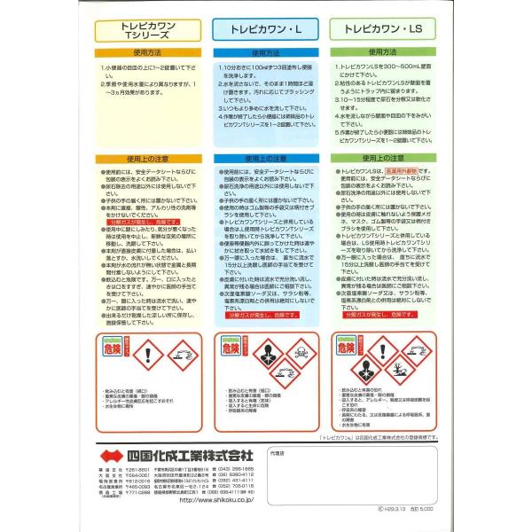 ●「トレピカワン」は、トイレ配管の詰まり、悪臭の原因となる尿石の生成を防止し、固着した尿石を洗浄するために開発された、尿石除去・洗浄剤です。
