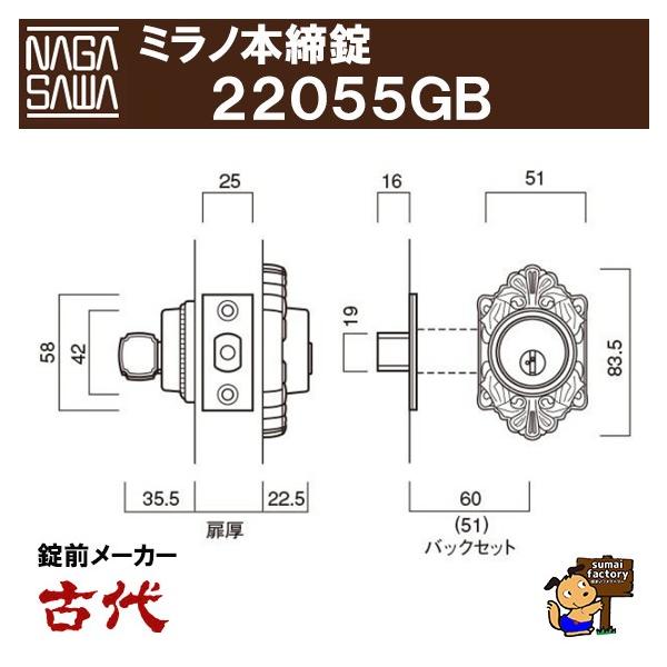 古代 長沢製作所 ミラノ本締錠 22055GB