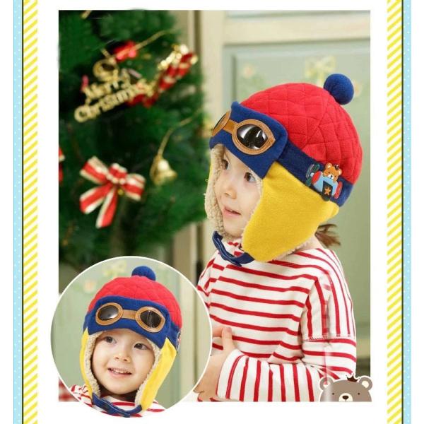 送料無料 赤ちゃん パイロット なりきり ベビー帽子 耳当て付き メガネ 男の子 キッズ 裏起毛