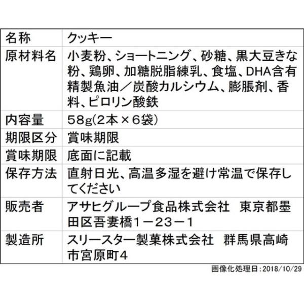 黒豆きな粉のやさしい風味をいかして焼き上げた、口どけしやすい甘さ控えめのクッキーです。1歳からのおやつ+DHA