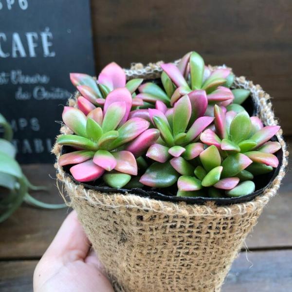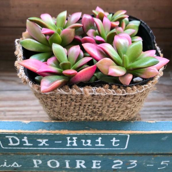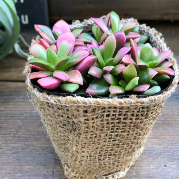 麻布アレンジしてポットごとでお送りしますのでお好きな鉢や寄せ植えに使えます。育てやすくとても可愛い多肉です。