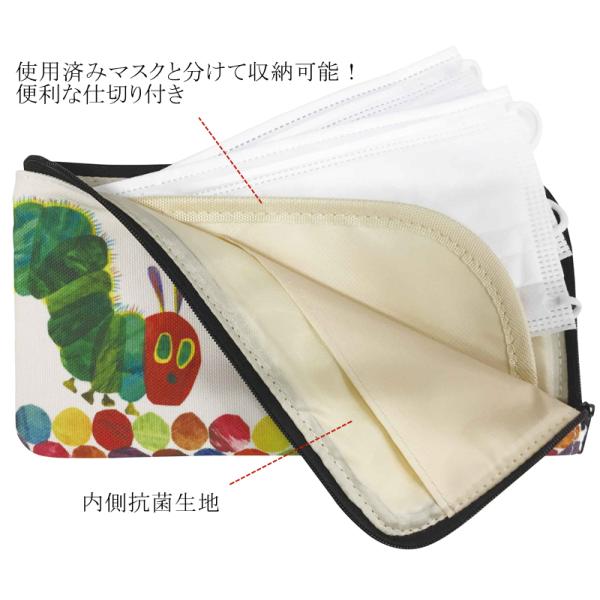 はらぺこあおむし マスクケース 抗菌 マスクポーチ 内ポケット付き 抗菌生地 小物入れ ファスナー付き エリックカール かわいい キャラクターグッズ