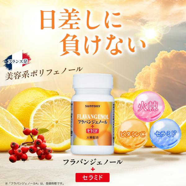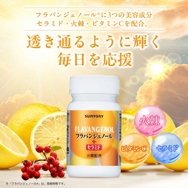 フラバンジェノール+セラミド サプリメント 120粒(約1ヶ月分) サントリー公式 火棘 フラバンジェノール セラミド サプリ