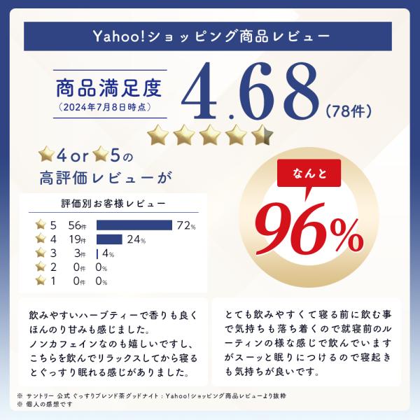 眠りに大切なのは「時間」ではなく「質」。ところが年齢を重ねると『質の良い眠り』はどんどん遠ざかり、ぐっすり休めない日が増えてきてしまいます。そこでサントリーが開発したのが、体に優しい西洋植物×和漢植物を絶妙に配合した、ぐっすりブレンド茶「グッドナイト」。温かいお茶がほどよく体を温めて自然な眠りを後押し、さらに心落ち着く植物の香りで朝まで続くぐっすりをサポートします。お休み30分前に「1杯のお茶を飲む」新習慣を、あなたも始めてみませんか?