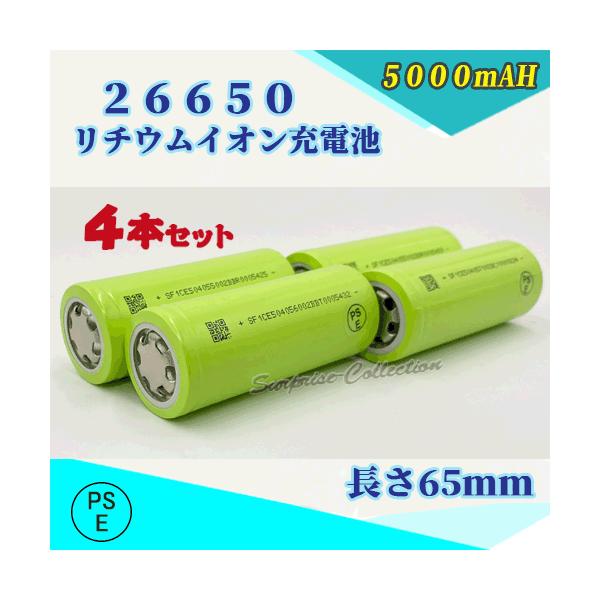 【PSE適合品届出済】26650充電池4本セット リチウムイオン充電池 バッテリー PSE認証済 5000mAH
