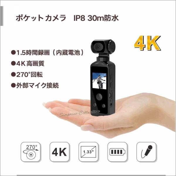 最新4K防水アクションカメラ 手ブレ補正 Wi-Fi対応 外部マイク接続可 回転レンズで自在撮影 内蔵バッテリー 30m防水