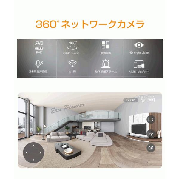 機能:Wifiネットカメラ/200万画素/360度視野/双方向音声/128GB対応/動体検知/赤外線/Tuyaアプリ