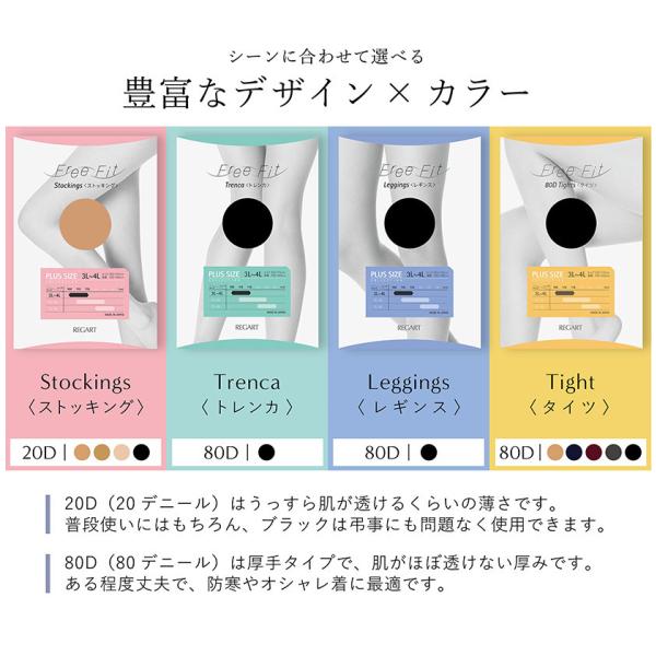 ストッキング、トレンカ、レギンス、タイツ(80デニール)からお選び頂けます。