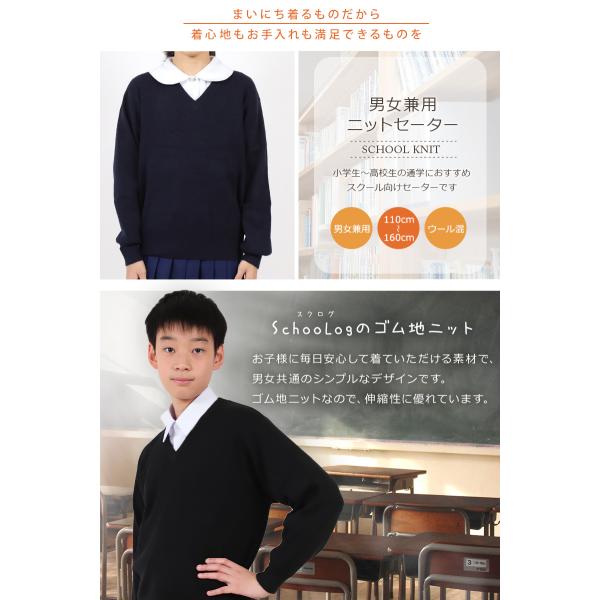 スクールセーター 小学生 ウール混 洗える 冬 男子 女子 中学生 制服 ニット 薄手 無地 vネック 110cm〜160cm 小学校 子供 キッズ ジュニア 秋 黒 ネイビー 紺