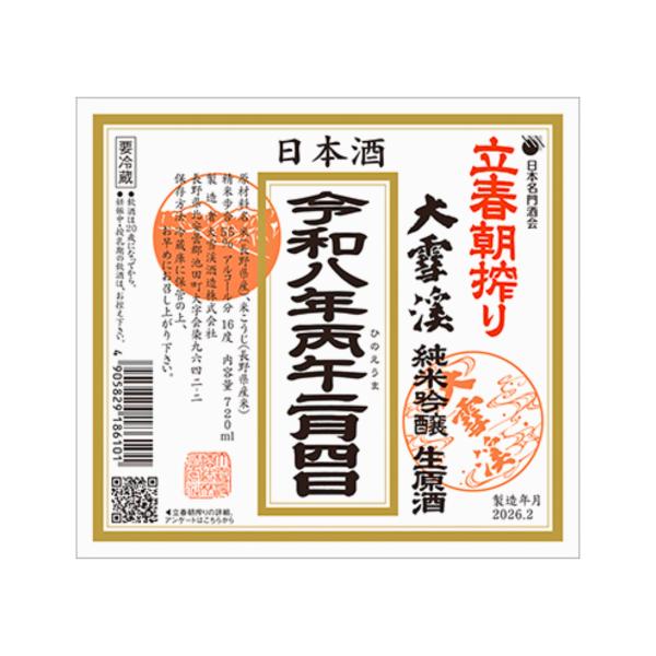 予約<特別限定酒> 立春朝搾り 大雪渓 純米吟醸 生原酒 720ml /大雪渓酒造 長野 日本酒 数量限定 縁起酒 地酒 チルド便 2/5以降発送予定