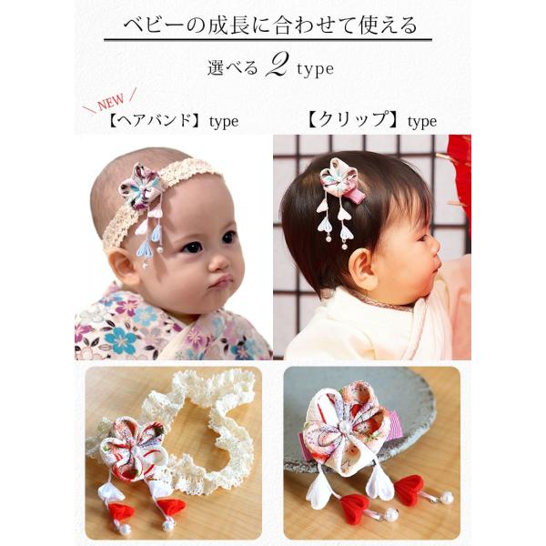 ベビー袴 袴ロンパース 髪飾り ヘアバンド クリップ 藤下がり つまみ細工 日本製 お宮参り 初節句 メール便可[M便 2/6]