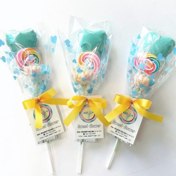 サイズ H29×W24棒付きキャンディ3本、ハートペロペロキャンディ大1本誕生日やお祝い、ちょっとしたギフトに。色違いの赤もあるよ