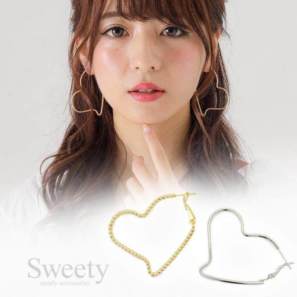 オープンハートピアス 3.5cm 5cm 6cm 全2色