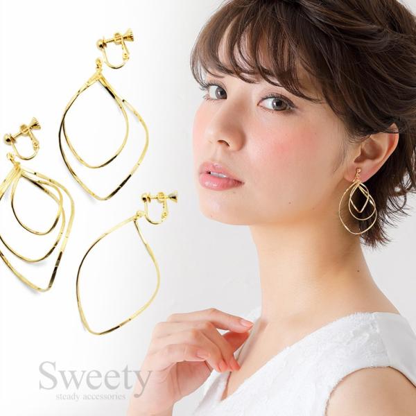 イヤリング フープイヤリング 多連ツイスト 揺れる 3連 2連 1連 全3色