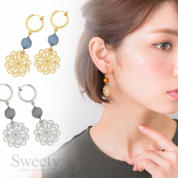 イヤリング 揺れる エスニック 軽い ストーン ゴールド シルバー ブラウン カーキ