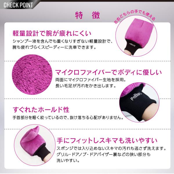 ・やわらかいマイクロファイバーで、ボディにやさしく洗車ができます。長い毛足が汚れをかき出します。コーティング施工車の洗車にもお勧めです。
