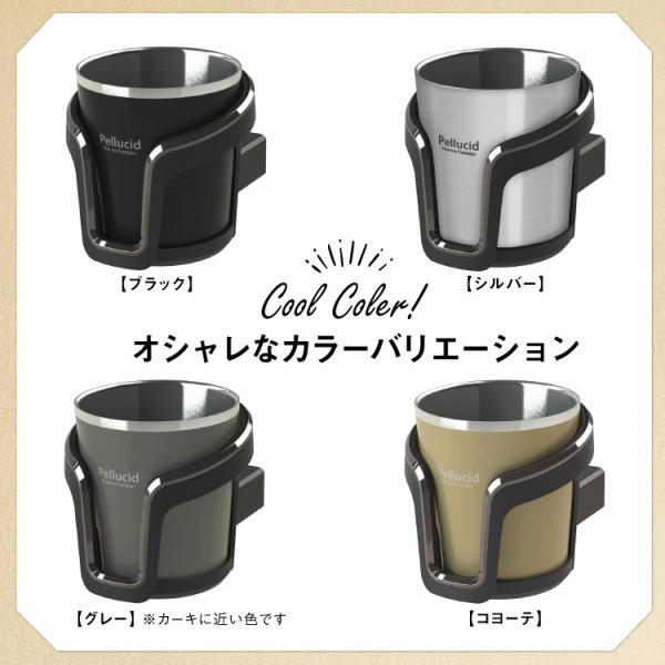 ・コンビニコーヒーをカップのまま収納して保温保冷できるステンレスサーモタンブラー付きドリンクホルダーです。