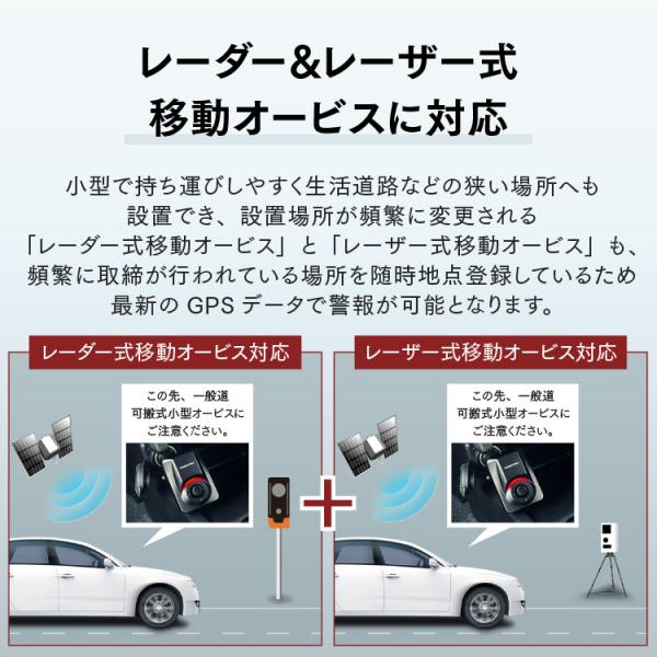 ・本体に登録されたGPSデータにより新型取締機「レーザー式固定、移動オービス」に対応