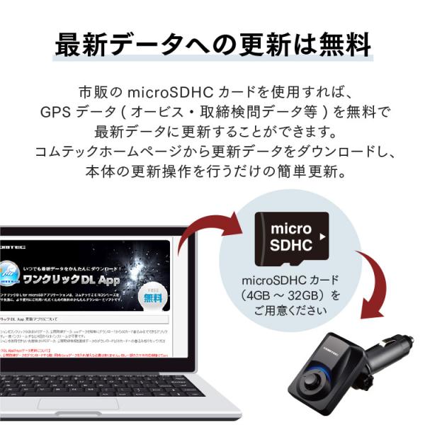 ※市販microSDHCカードでGPSデータ(オービス・取締検問データ等)が無料で最新データに更新できます。