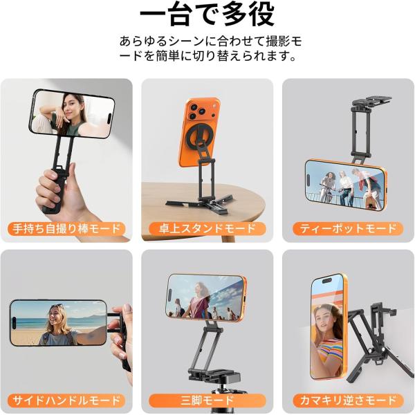 Ulanzi MA38 スマホ三脚 ミニ三脚 magsafeに対応 自撮り棒 スマホスタンド 携帯スタンド 折りたたみ 磁気マグネット iPhone Android