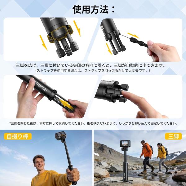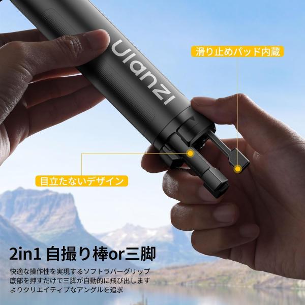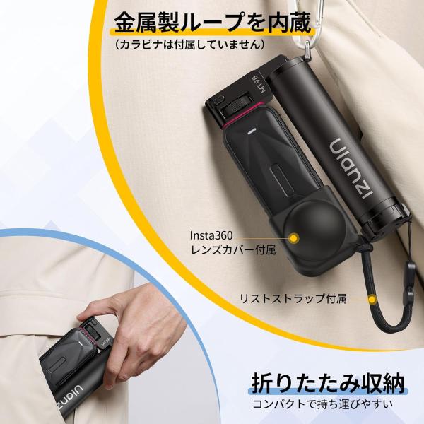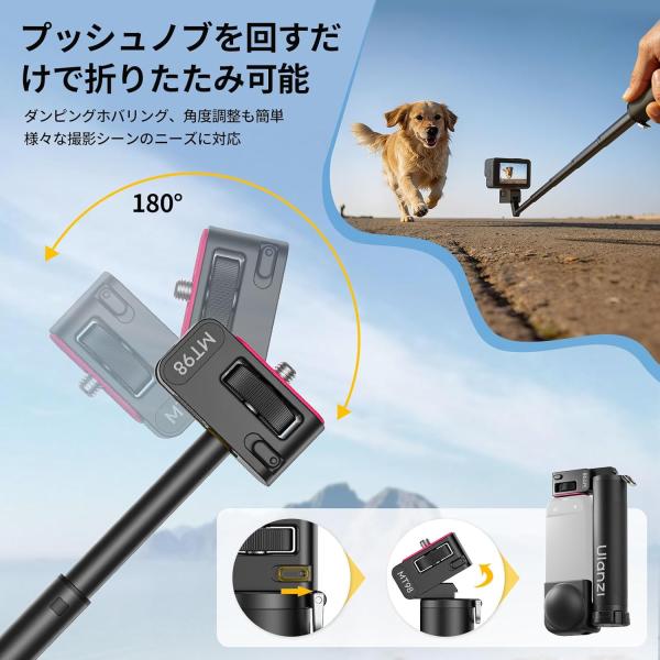 Ulanzi MT98 自撮り棒 折りたたみ式 アクションカメラ自撮り棒 三脚 目に見えない 1/4インチネジ 角度調節可能 5階伸縮 コンパクト 延長一脚ポール 軽量
