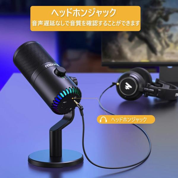 MAONO 単一指向性 USB コンデンサーマイク ゲーミングマイク RGBライト ミュート ヘッドフォン出力 ボリュームコントロール Windows Mac 白 黒 ピンク DM30