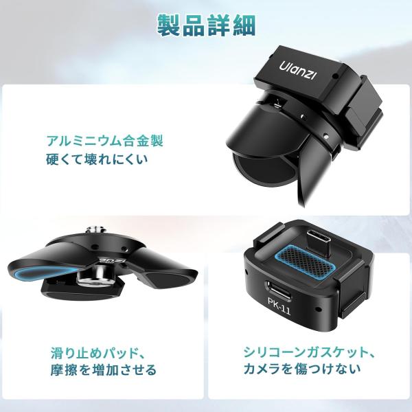 Ulanzi Pocket3用 PK08 PK11 ミニ三脚ベースセット 充電ベース Type-Cポート 1/4ネジ穴 卓上ミニ三脚 Pocket3に対応 アルミ製 PK0811